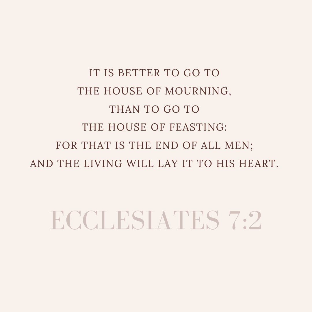 “It is better to go to the house of mourning, than to go to the house of feasting: for that is the end of all men; and the living will lay it to his heart” (Ecclesiastes 7:2).