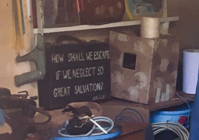 Tom has gone to be with the Saviour he loved. His funeral sermon kind of preached itself. And his toolbox sits now as he left it, with its hand-painted verse still preaching, “How shall we escape if we neglect so great salvation?” (Hebrews 2:3)