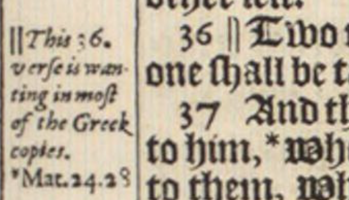 Such is the absolutist’s commitment to their preferred form of the text, that to admit any doubt here would be tantamount to giving up all confidence that the Bible is the Word of God. Such a position is not new: the KJV translators knew of some in their own day who did not want marginal notes in their Bibles ‘lest the authority of the Scriptures for deciding of controversies, by that show of uncertainty, should somewhat be shaken’.