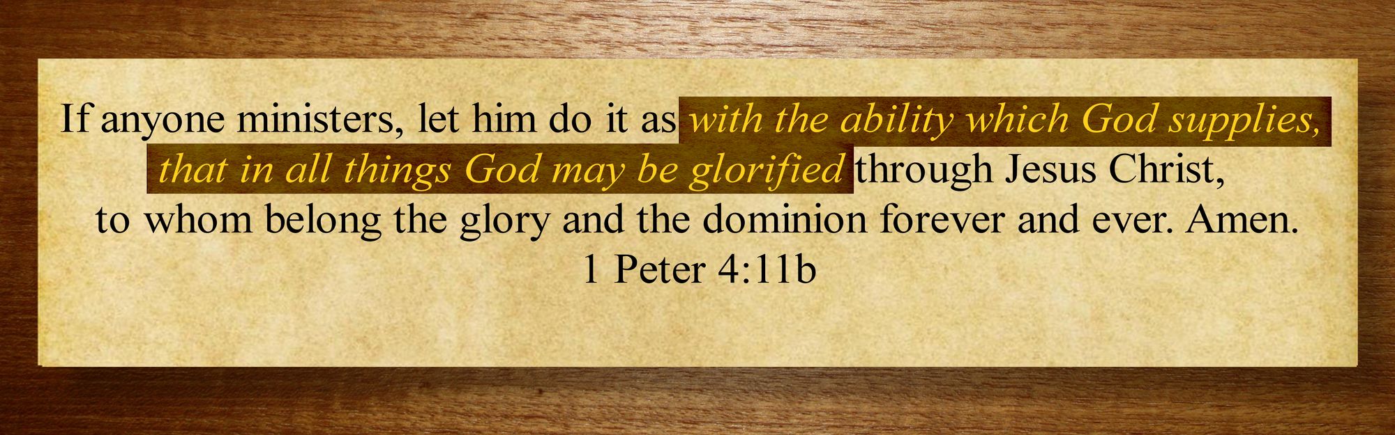 I may also engage with the understanding that every capacity to bless comes from the resource of grace that is in Him. He is about the business of endowing His people with manifold aspects of His grace, so as to redemptively bless. As the verse that follows next implies, the strength to minister is a provided strength, and the goal is that God’s worth and goodness be more and more seen, recognized and appreciated. Also, it is a Gospel goal because it is glory spoken of as being through Jesus Christ.