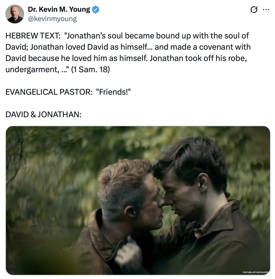 In 1895, while standing trial for homosexual acts, Oscar Wilde appealed to the Biblical account of David and Jonathan as an example of “the love that dare not speak its name”.