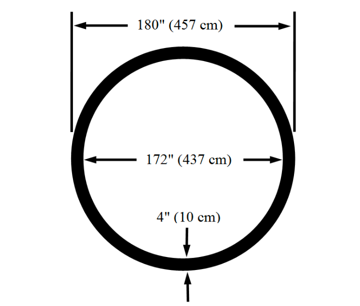 For simplicity, let us convert cubits to inches and centimeters, and circumference to diameter using an 18-inch (46 cm) cubit and 3.14159 for π. This gives us diameters of 180 inches (457 cm) and 172 inches (437 cm). Subtracting the latter diameter from the former, then dividing the difference by two, gives us 4 inches (10 cm), a perfectly reasonable value for a handbreadth. This is especially so if the thumb is included, or the portion of the hand at the first thumb joint is used. The above analysis holds true for other cubit lengths and hand sizes.